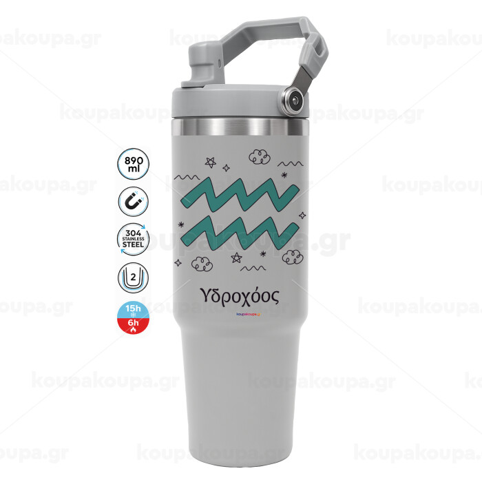 Ζώδια Υδροχόος, GREY color, 890ml (30oz) stainless Steel Tumbler with Handle