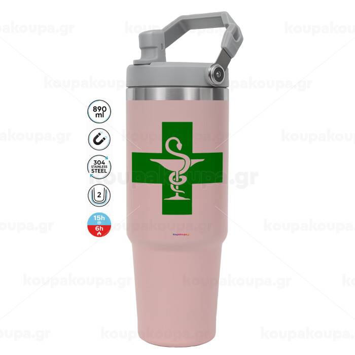 Φαρμακείο, Pink color, 890ml (30oz) stainless Steel Tumbler with Handle