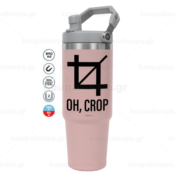Oh Crop, Pink color, 890ml (30oz) stainless Steel Tumbler with Handle