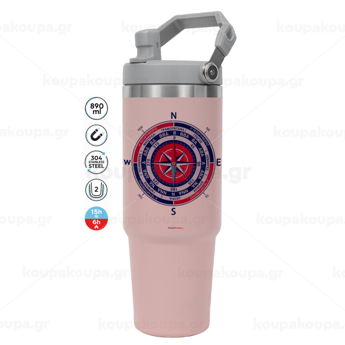 Wind compass, Pink color, 890ml (30oz) stainless Steel Tumbler with Handle