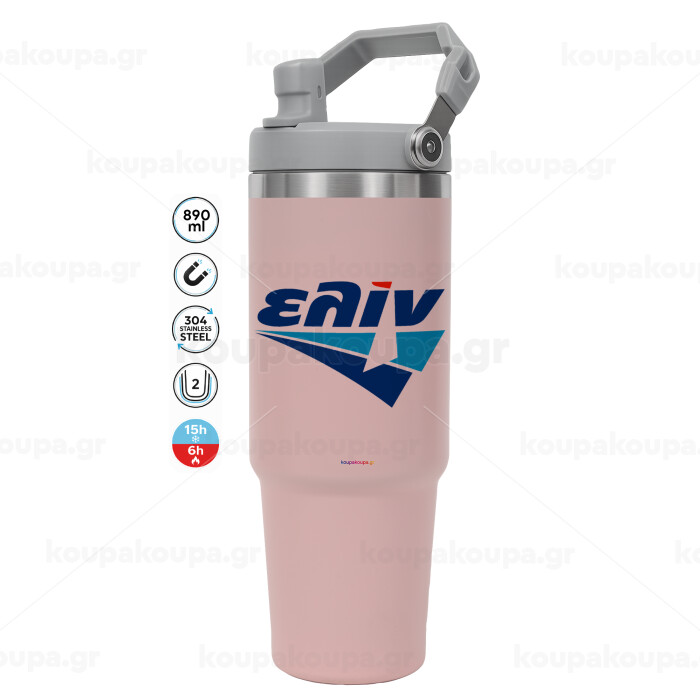 Πρατήριο καυσίμων ΕΛΙΝ, Pink color, 890ml (30oz) stainless Steel Tumbler with Handle