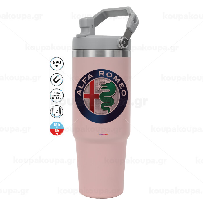 Alfa Romeo, Pink color, 890ml (30oz) stainless Steel Tumbler with Handle