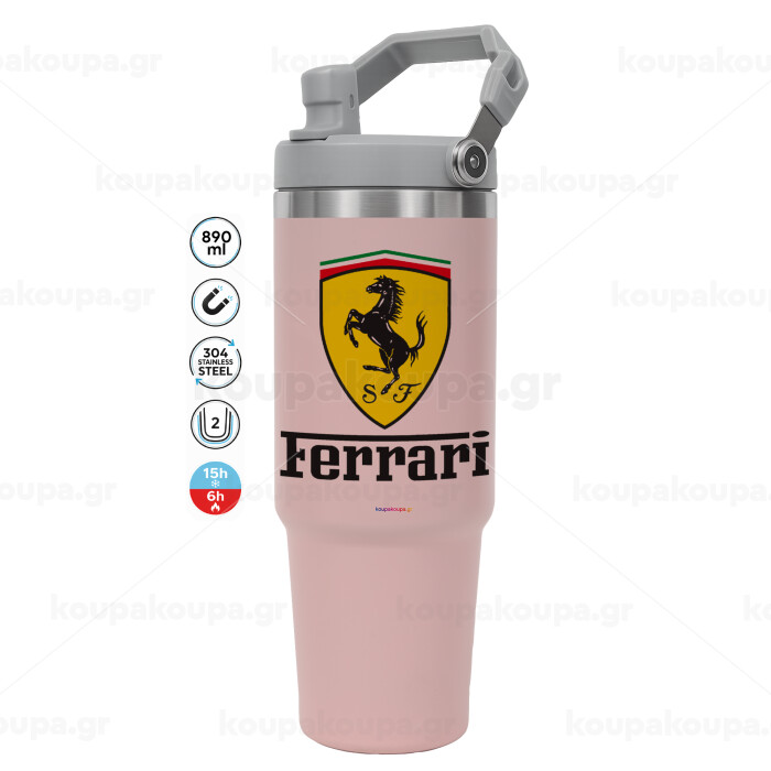 Ferrari S.p.A., Pink color, 890ml (30oz) stainless Steel Tumbler with Handle