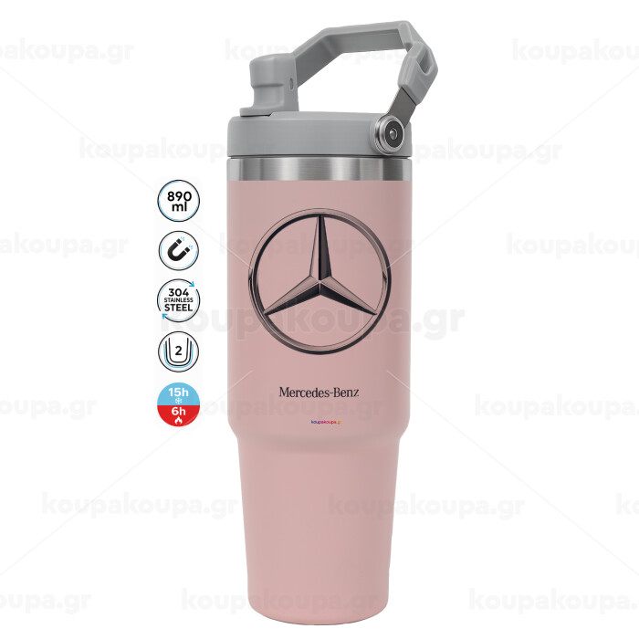 mercedes, Pink color, 890ml (30oz) stainless Steel Tumbler with Handle