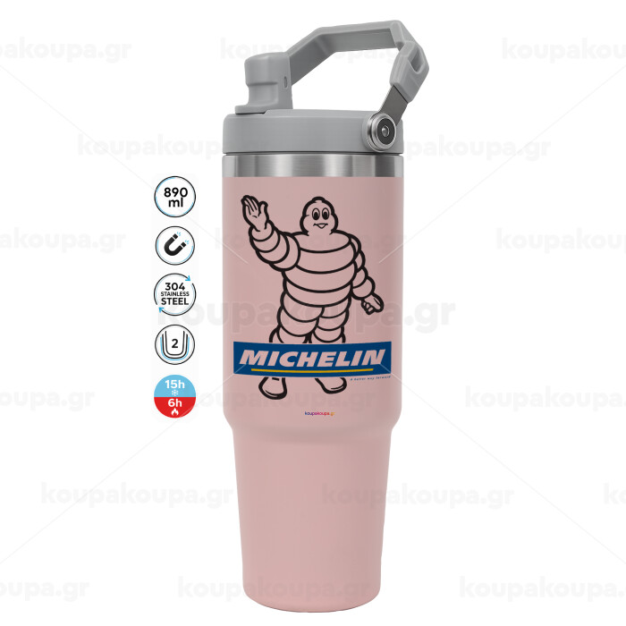Michelin, Pink color, 890ml (30oz) stainless Steel Tumbler with Handle