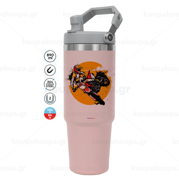 Motocross, Pink color, 890ml (30oz) stainless Steel Tumbler with Handle