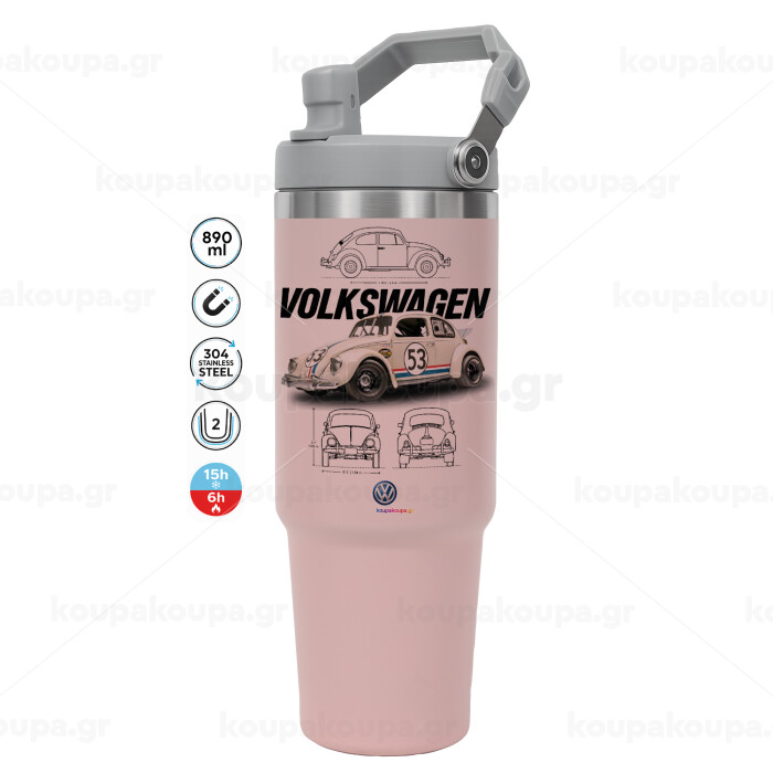 Volkswagen Beetle, Pink color, 890ml (30oz) stainless Steel Tumbler with Handle