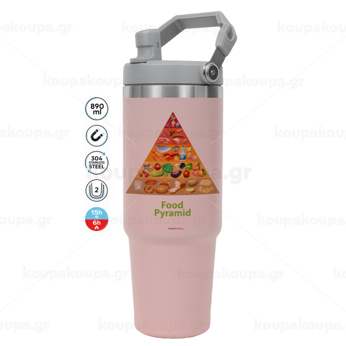 Food pyramid chart, Pink color, 890ml (30oz) stainless Steel Tumbler with Handle