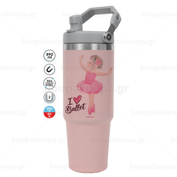 I Love Ballet, Pink color, 890ml (30oz) stainless Steel Tumbler with Handle