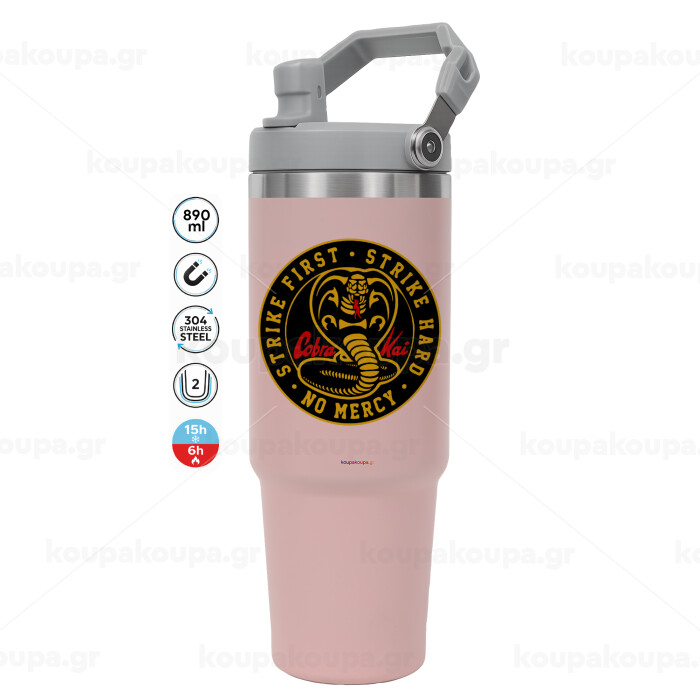 cobra kai strike first dojo, Pink color, 890ml (30oz) stainless Steel Tumbler with Handle