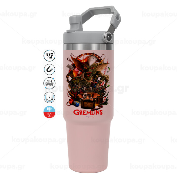 Gremlins, Pink color, 890ml (30oz) stainless Steel Tumbler with Handle