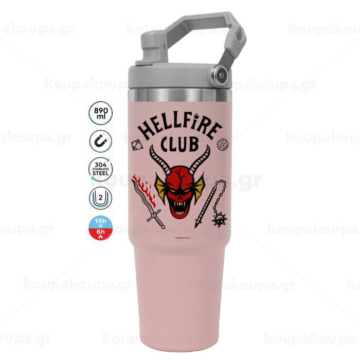 Hellfire CLub, Stranger Things, Pink color, 890ml (30oz) stainless Steel Tumbler with Handle