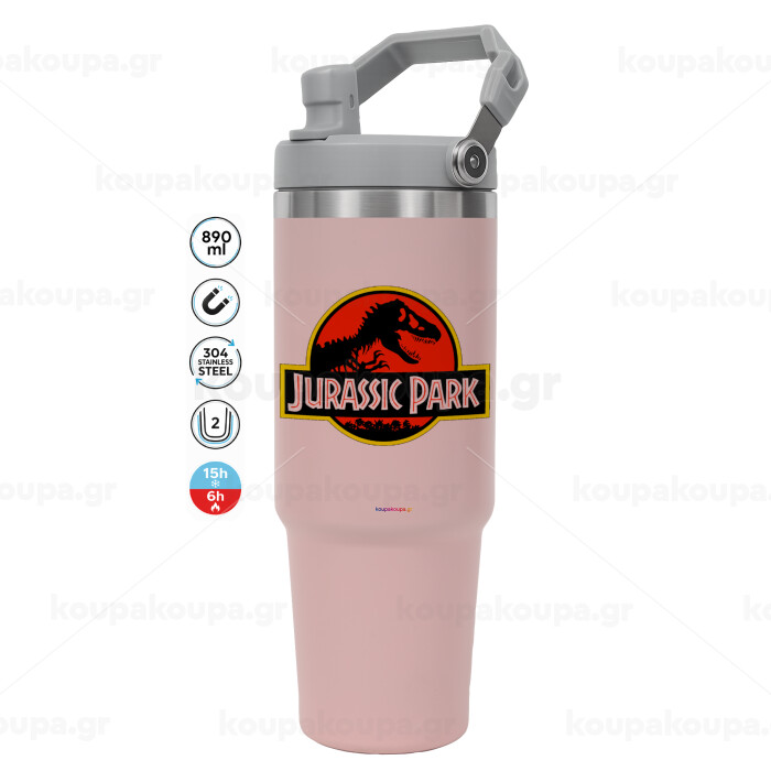 Jurassic park, Pink color, 890ml (30oz) stainless Steel Tumbler with Handle