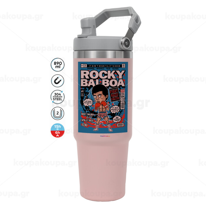 Rocky Balboa, Pink color, 890ml (30oz) stainless Steel Tumbler with Handle