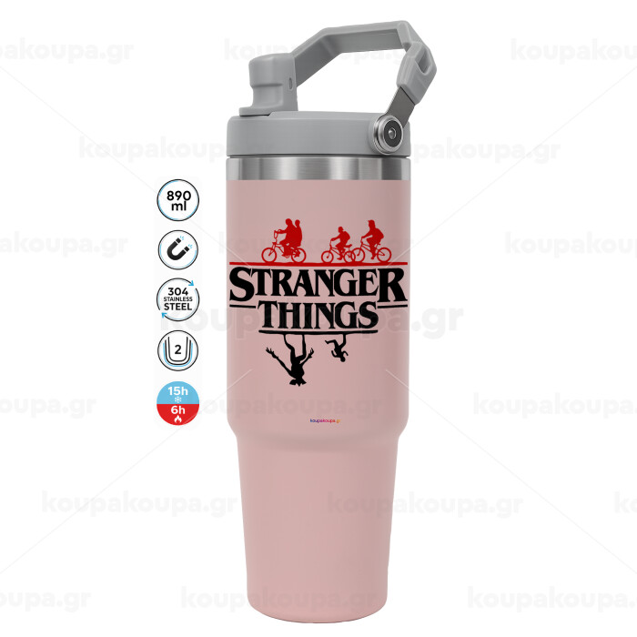 Stranger Things upside down, Pink color, 890ml (30oz) stainless Steel Tumbler with Handle