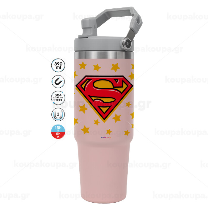 Superman Blue, Pink color, 890ml (30oz) stainless Steel Tumbler with Handle