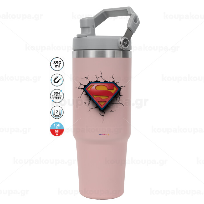 Superman cracked, Pink color, 890ml (30oz) stainless Steel Tumbler with Handle