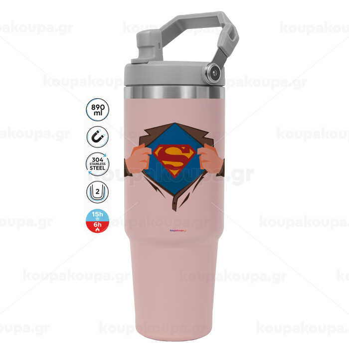 Superman hands, Pink color, 890ml (30oz) stainless Steel Tumbler with Handle
