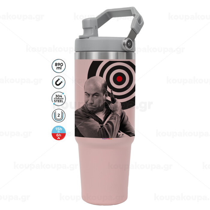 Θου Βου Φαλακρός Πράκτωρ, Pink color, 890ml (30oz) stainless Steel Tumbler with Handle