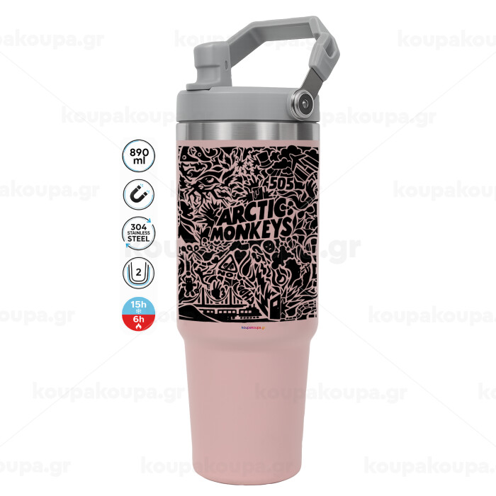 Arctic Monkeys, Pink color, 890ml (30oz) stainless Steel Tumbler with Handle
