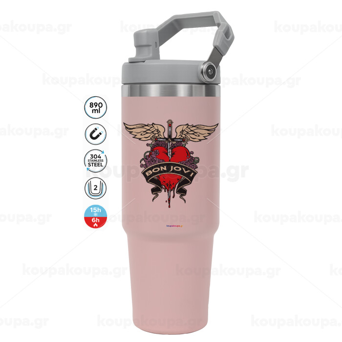 Bon Jovi, Pink color, 890ml (30oz) stainless Steel Tumbler with Handle