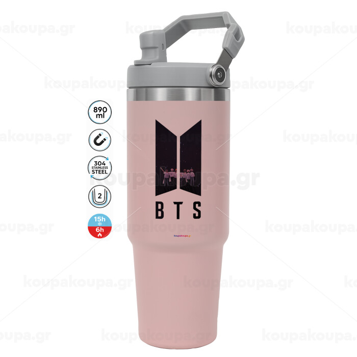 BTS, Pink color, 890ml (30oz) stainless Steel Tumbler with Handle