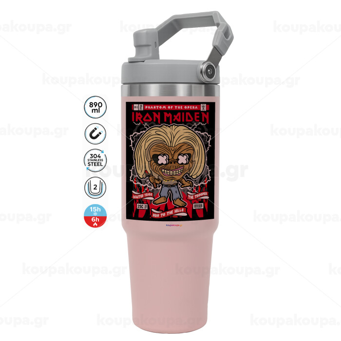Iron maiden (eddie), Pink color, 890ml (30oz) stainless Steel Tumbler with Handle
