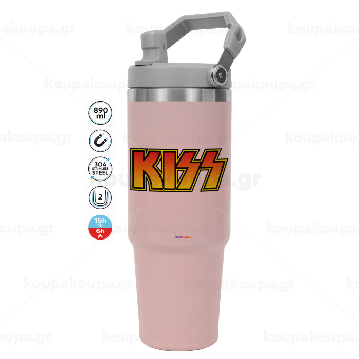 KISS, Pink color, 890ml (30oz) stainless Steel Tumbler with Handle