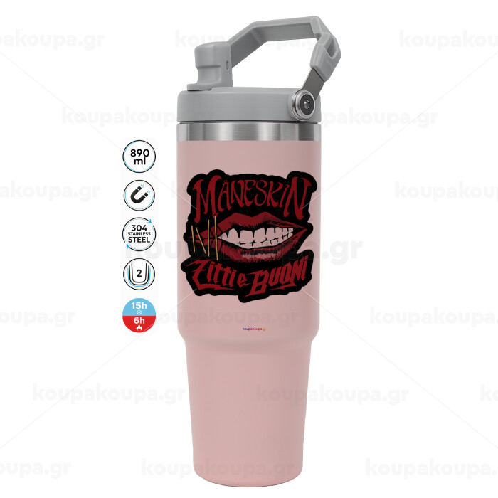 Maneskin lips, Pink color, 890ml (30oz) stainless Steel Tumbler with Handle