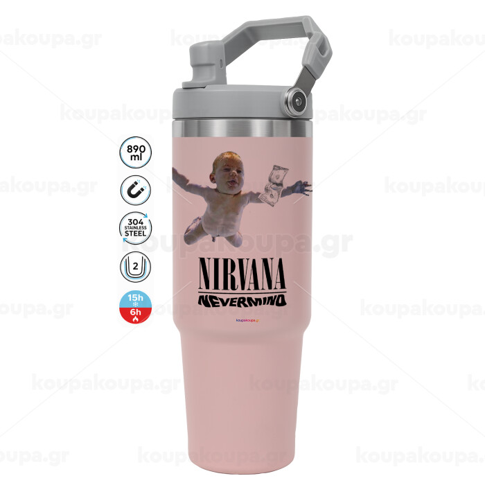 Nirvana nevermind, Pink color, 890ml (30oz) stainless Steel Tumbler with Handle