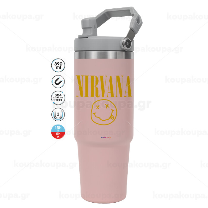 Nirvana, Pink color, 890ml (30oz) stainless Steel Tumbler with Handle