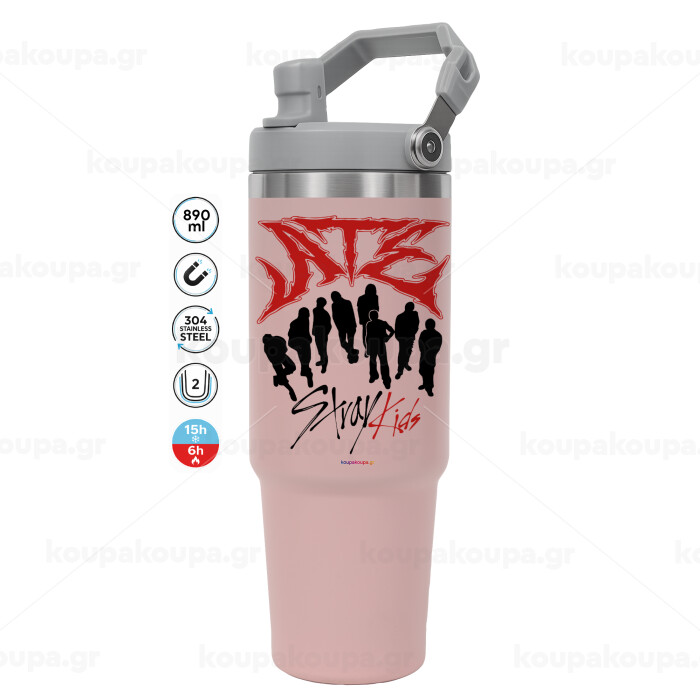 Stray Kids Boy band, Pink color, 890ml (30oz) stainless Steel Tumbler with Handle