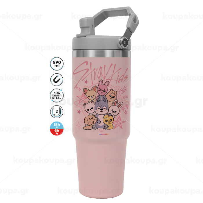 Stray Kids Pink, Pink color, 890ml (30oz) stainless Steel Tumbler with Handle