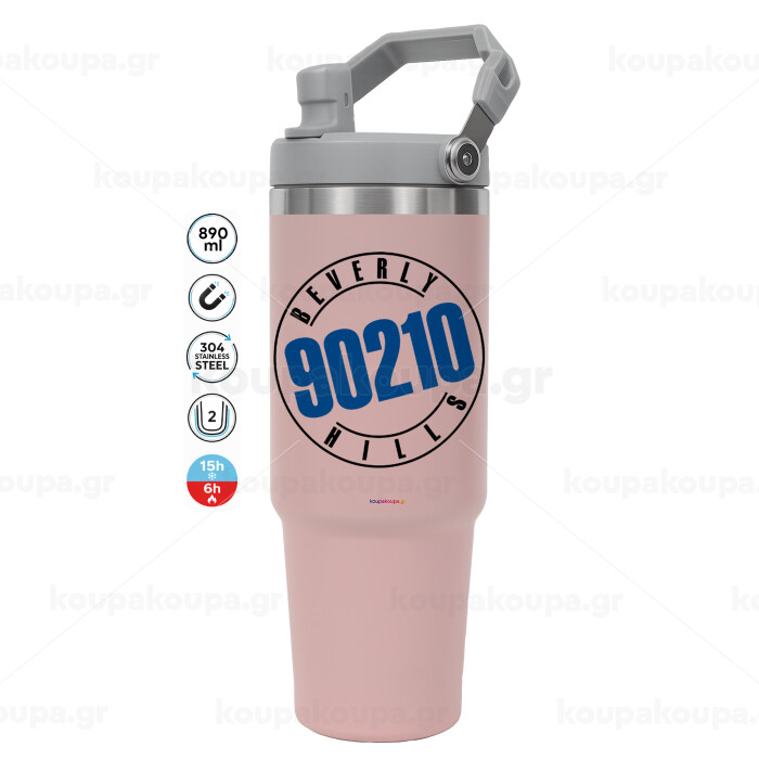 Beverly Hills, 90210, Pink color, 890ml (30oz) stainless Steel Tumbler with Handle