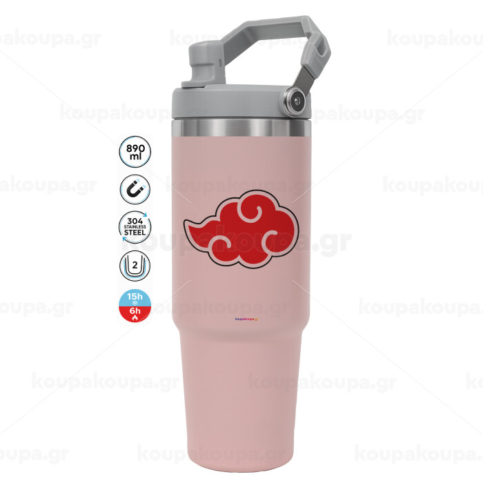 Naruto Akatsuki Cloud, Pink color, 890ml (30oz) stainless Steel Tumbler with Handle