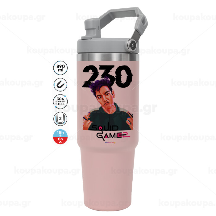 Squid game 2, Thanos 230, Pink color, 890ml (30oz) stainless Steel Tumbler with Handle