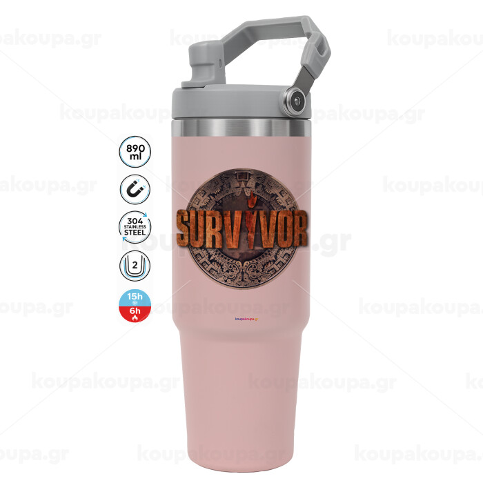 Survivor, Pink color, 890ml (30oz) stainless Steel Tumbler with Handle