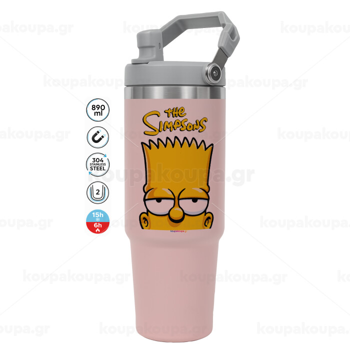 The Simpsons Bart, Pink color, 890ml (30oz) stainless Steel Tumbler with Handle