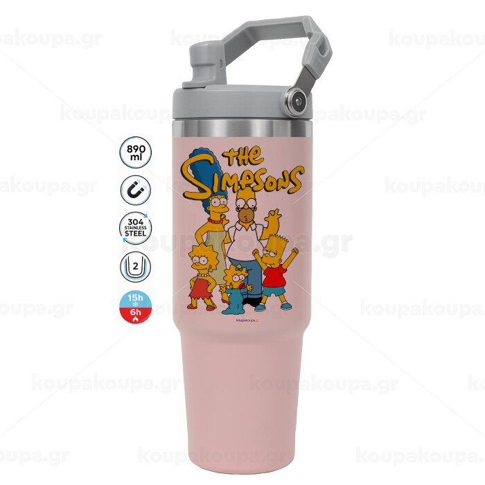 The Simpsons, Pink color, 890ml (30oz) stainless Steel Tumbler with Handle