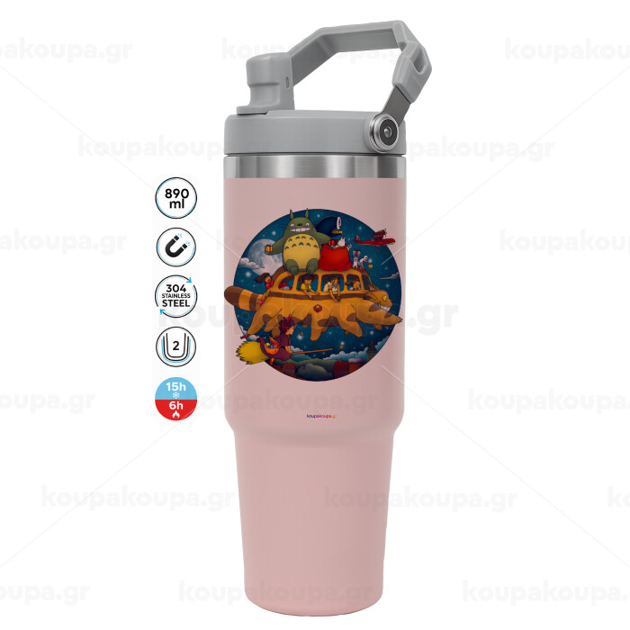 Totoro Catbus, Pink color, 890ml (30oz) stainless Steel Tumbler with Handle