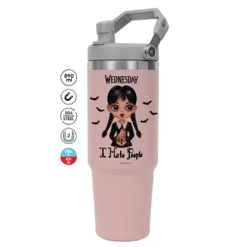 Wednesday Adams, i hate people, Pink color, 890ml (30oz) stainless Steel Tumbler with Handle