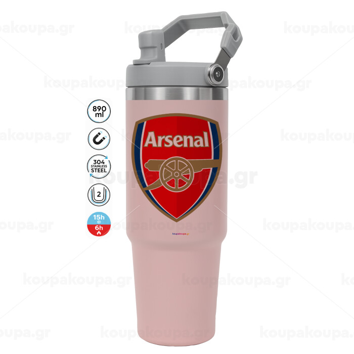 Arsenal, Pink color, 890ml (30oz) stainless Steel Tumbler with Handle