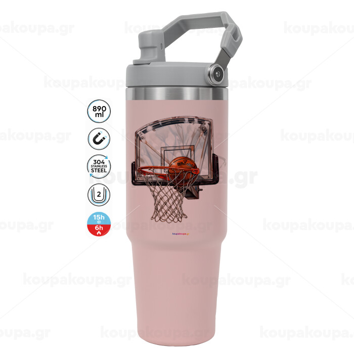 Basketball, Pink color, 890ml (30oz) stainless Steel Tumbler with Handle