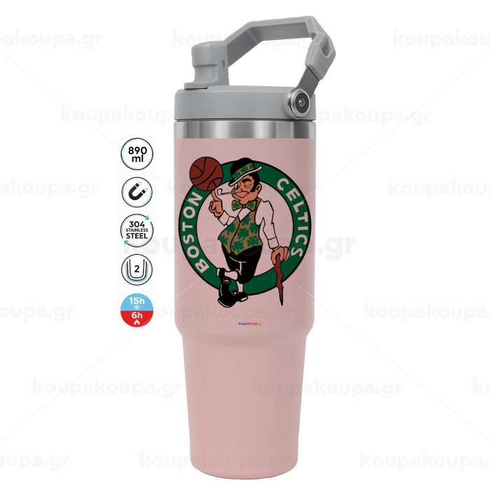 Boston Celtics, Pink color, 890ml (30oz) stainless Steel Tumbler with Handle