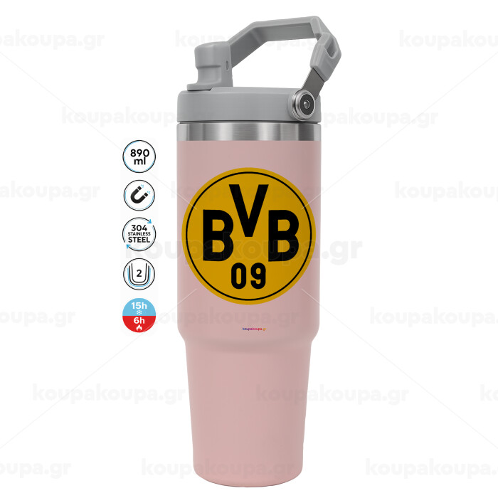 BVB Dortmund, Pink color, 890ml (30oz) stainless Steel Tumbler with Handle