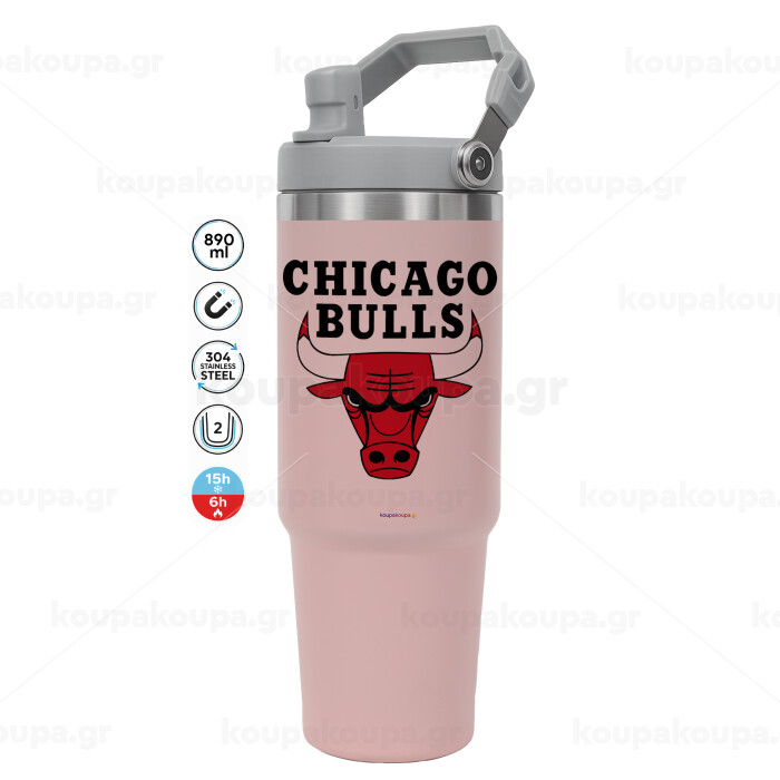 Chicago Bulls, Pink color, 890ml (30oz) stainless Steel Tumbler with Handle