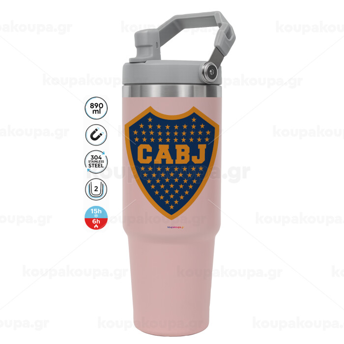 Club Atlético Boca Juniors, Pink color, 890ml (30oz) stainless Steel Tumbler with Handle