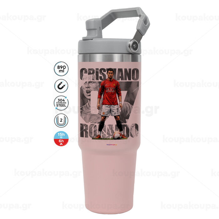 Cristiano Ronaldo (Κριστιάνο Ρονάλντο), Pink color, 890ml (30oz) stainless Steel Tumbler with Handle