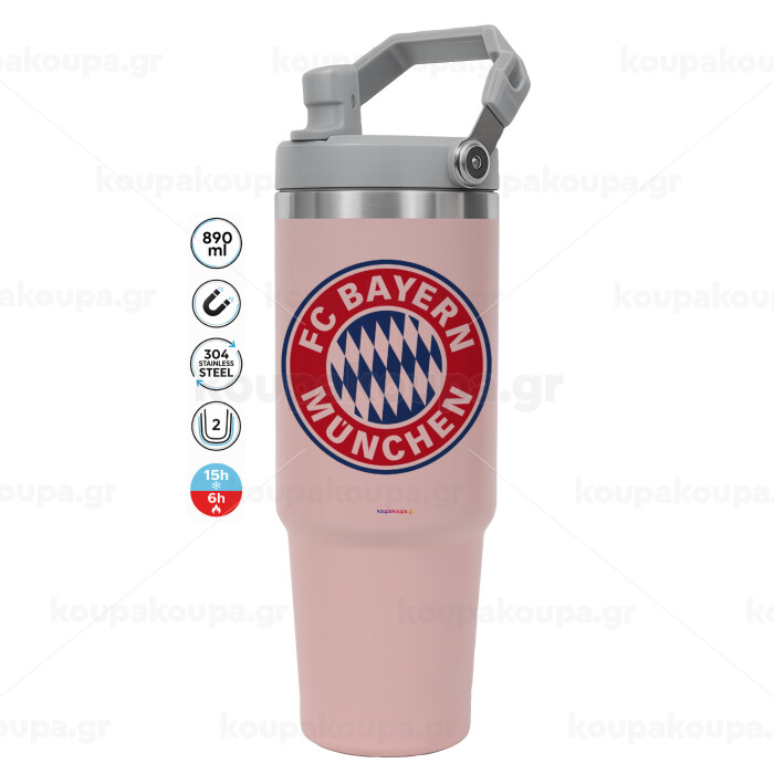 FC Bayern Munich, Pink color, 890ml (30oz) stainless Steel Tumbler with Handle