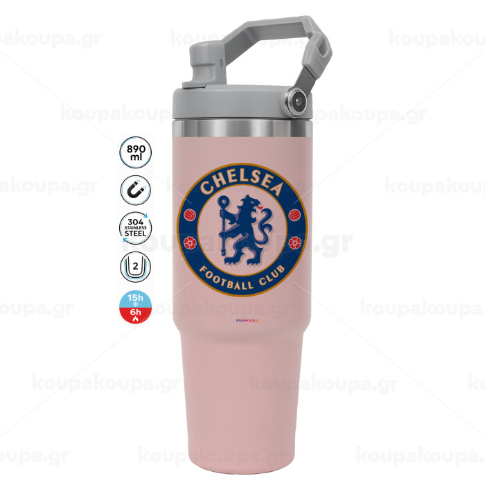 FC Chelsea, Pink color, 890ml (30oz) stainless Steel Tumbler with Handle